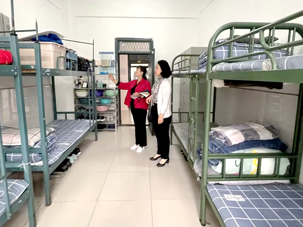 两位督学首先深入实地查看了学校的安全工作,尤其是鉴于该校为寄宿制学校,两位督学详细查看了学校的食堂菜品,了解学校关于食堂的管理并对照明细表详细填写了清单;随后,又进入学生宿舍,在学校宿管人员的陪同下,参观了学校的内务管理情况,看到学校规范、有序、整洁的宿舍,两位督学深表赞许。