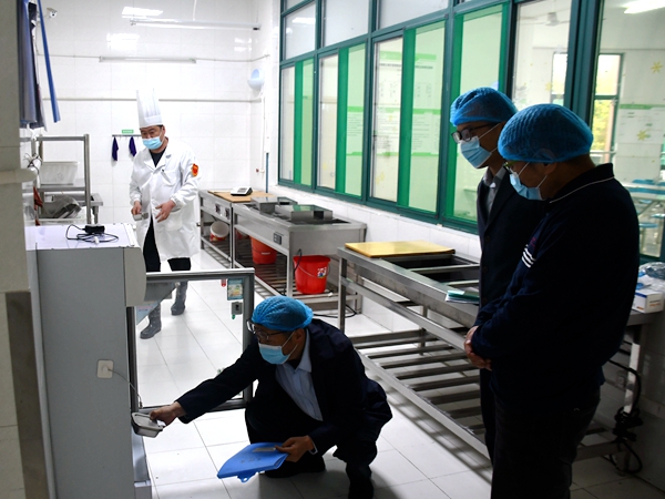 在食堂督查环节,石卫星仔细核查管理制度,提出多项改进要求:规范陪餐制度执行、优化菜品结构多样性、落实食品留样柜“双人双锁”制度、规范更衣室使用流程,防止交叉污染。针对调味品管理,他特别指出:“蚝油等需冷藏食材必须严格落实冷链管理。”他耐心叮嘱工作人员:“教育是良心工程,要提升服务温度,建立有效沟通机制。餐饮企业应培育特色文化,以优质服务助力师生发展。”石卫星强调要压实学校主体责任,严控食材采购等关键环节,筑牢校园食品安全防线。