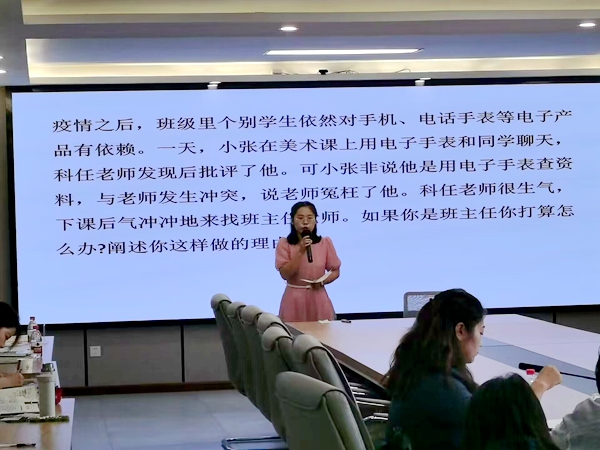 两位老师在一个月不到的时间内,积极准备每一轮比赛。精彩动人的育人故事,见证着老师和学生的蜕变历程,两位老师以爱打底,用关怀为学生的人生着色。班会课设计精巧有深度,让评委们欣赏到青年教师小荷初露的崭新与创意。情景模拟更是考验了老师们的应变能力和与学生、家长的沟通能力。还有干货满满的育人方略,宏观解读时,条理清晰,言简意赅;逐条解读时,详略分朗,凸显特色。