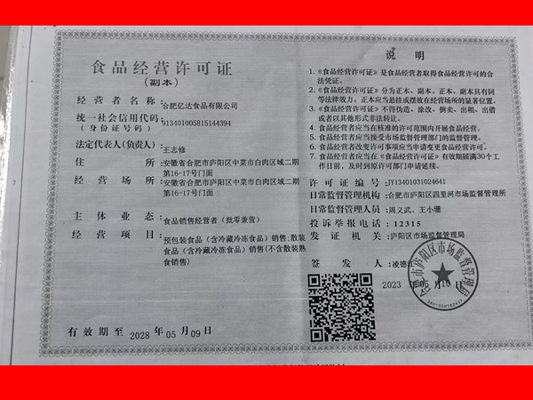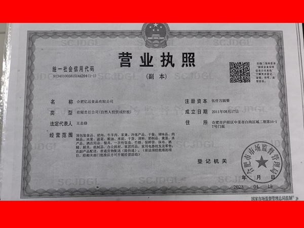 一、食堂原材料供应商:合肥亿达食品有限公司