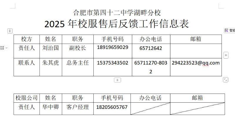 合肥市第四十二中学湖畔分校2025年校服售后反馈工作信息表