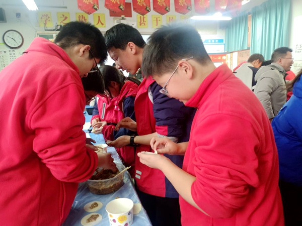 八(4)班的同学们精心组织了“劳动技能秀,争做‘饺饺’者”的庆元旦趣味包饺子活动。活动分成包饺子竞速赛、元旦诗词大比拼、饺子创意秀三个环节。同学们亲手包、亲口尝,亲自答题,度过了一段非常有趣、有料、有意义的美好时光。活动寓教于乐,让同学们接受了一次劳动教育的洗礼,从中,同学们深刻感受到了中国文化——饺子的味道之美、诗词的韵律之美、劳动的成果之美。