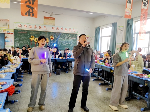 九(4)班的活动在同学们的欢呼声中拉开帷幕。同学们的才艺大秀场精彩纷呈,小品表演令人捧腹,深情的诗歌朗诵饱含着对新年的憧憬与期待。韩治国老师也登台献唱,将活动气氛推向高潮。