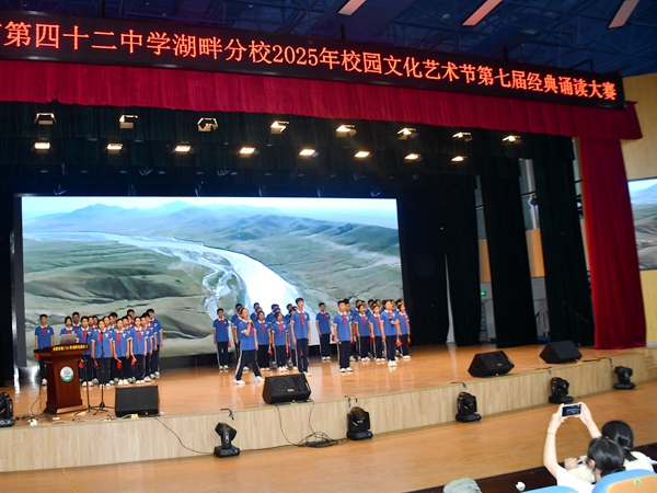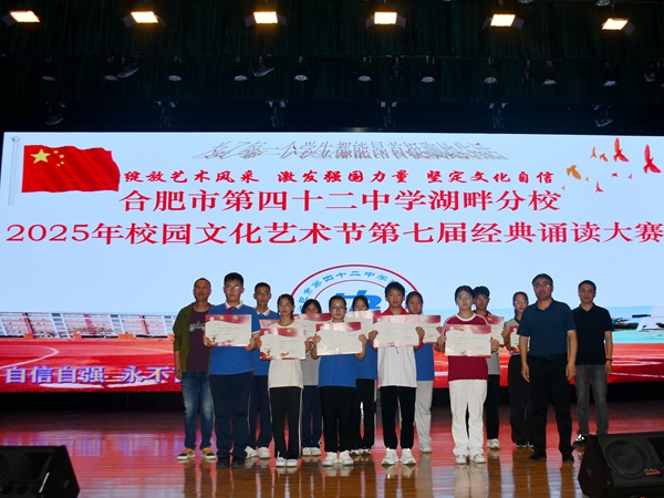 比赛结束后,合肥市第四十二中学湖畔分校党支部副书记、副校长崔北好对各班级的精彩表现给予点评。经过评委们的现场打分,分别评出了特等奖和一等奖。七(10)班的《爱莲说》、七(2)班的《黄河奔浩气,青春绽芳华》、七(9)班的《黄河颂》、七(1)班的《木兰诗》、七(4)班的《沁园春 雪》荣获了特等奖。