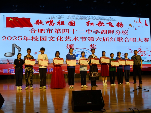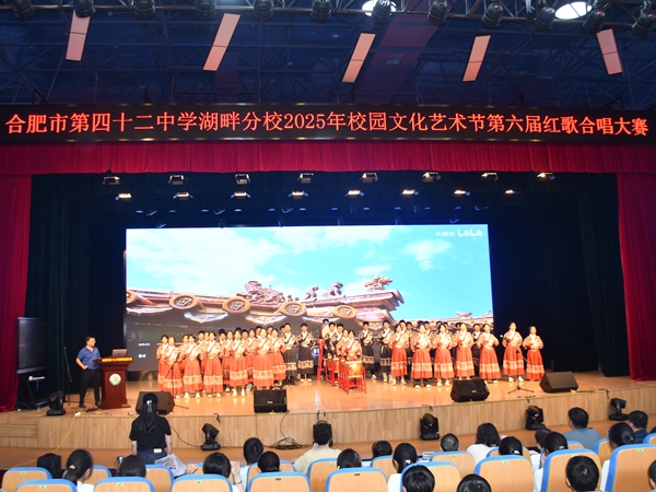 为深入开展爱国主义教育,传承红色基因,进一步丰富校园文化生活,2025年5月28日下午,合肥市第四十二中湖畔分校在南小湖畔花园分校大礼堂举办2025年校园文化艺术节第六届红歌合唱比赛暨学校少年宫展演活动。本次大赛以“歌唱祖国,红歌飞扬”为主题,八年级全体师生积极参与。