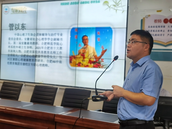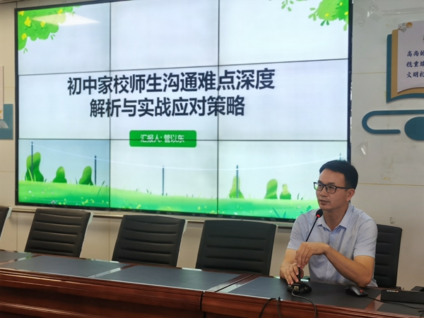 下午的培训聚焦德育实践关键环节。学校特邀知名专家管以东老师,带来《初中家校师生沟通难点深度解析与实战应对策略》专题讲座。管以东老师是合肥市心理健康学科带头人、合肥市家校共育教育名师工作室领衔人、第三届安徽最美教师,2021年合肥市十大教育新闻人物、合肥师范学院心理系校外硕士生导师,他在2021年获评“中国好人”。